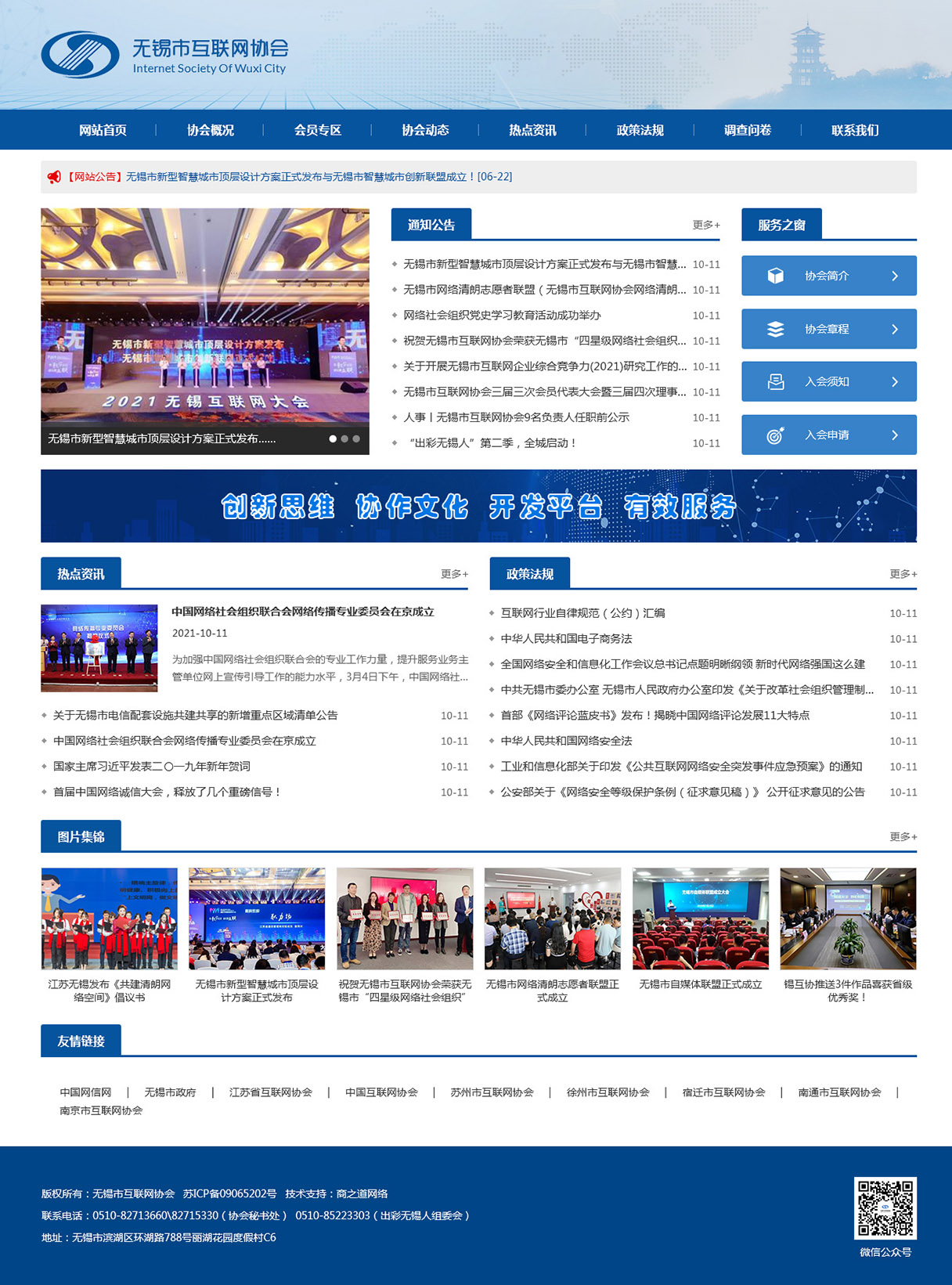 无锡市互联网协会(Wuxi Internet Association)成立于2008年11月13日,经江苏省通信管理局批准,在无锡市民政局核准注册,受国家法律保护的独立社团组织,业务主管单位中共无锡市委网络安全和信息化委员会办公室